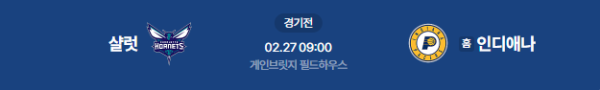 2026년 2월 27일 (금) 09:00 (KST) 예정 | NBA 정규시즌 샬럿 호니츠 vs 인디애나 페이서스 분석