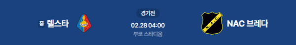 2026년 2월 28일 (토) 04:00 (KST) 예정 | 네덜란드 에레디비시 25라운드 텔스타 vs NAC 브레다 분석