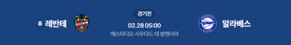 2026년 2월 28일 (토) 05:00 (KST) 예정 | 스페인 라리가 25라운드 레반테 vs 알라베스 분석