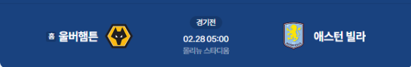2026년 2월 28일 (토) 05:00 (KST) 예정 | 잉글랜드 프리미어리그 27라운드 울버햄튼 vs 애스턴 빌라 분석