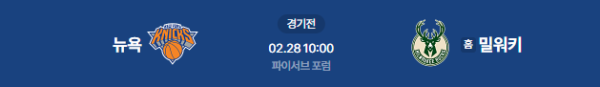 2026년 2월 28일 (토) 10:00 (KST) 예정 | NBA 정규시즌 뉴욕 vs 밀워키 분석
