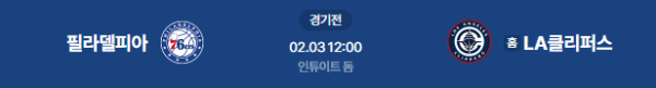 2026년 2월 3일 12:00 (KST) | NBA 필라델피아 76ers vs LA 클리퍼스 분석