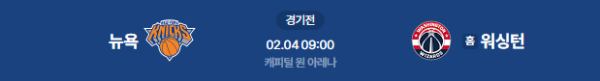 2026년 2월 4일 09:00 (KST) | NBA 뉴욕 닉스 vs 워싱턴 위저즈 분석