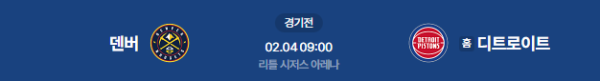 2026년 2월 4일 09:00 (KST) | NBA 덴버 너게츠 vs 디트로이트 피스톤즈 분석