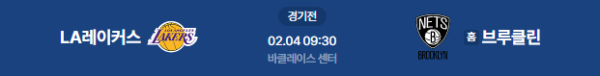 2026년 2월 4일 09:30 (KST) | NBA LA 레이커스 vs 브루클린 네츠 분석
