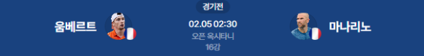 2026년 2월 5일 02:30 (KST) | ATP 250 몽펠리에 오픈 16강 움베르트 vs 마나리노 분석