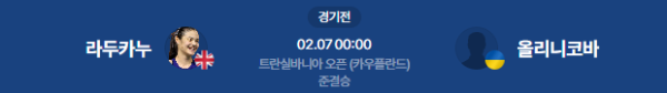 라두카누가 초반부터 몰아치는 공격으로 올리니코바의 수비를 빠르게 허물 수 있을지가 관건입니다. 올리니코바가 8강전처럼 수많은 브레이크 위기를 넘기며 경기를 장기전으로 끌고 간다면 라두카누를 당황하게 만들 수도 있습니다.