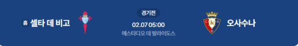 2026년 2월 7일 (토) 05:00 (KST) | 스페인 라리가 23라운드 셀타 비고 vs 오사수나 분석