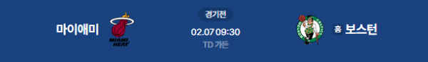 2026년 2월 7일 (토) 09:30 (KST) | NBA 정규시즌 마이애미 히트 vs 보스턴 셀틱스 분석