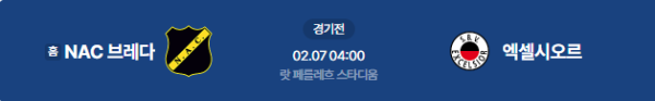 2026년 2월 7일 04:00 (KST) | 네덜란드 에레디비시 22라운드 NAC 브레다 vs 엑셀시오르 분석