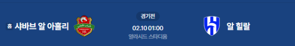2026년 2월 9일 23:00 (KST) | AFC 챔피언스리그 엘리트(ACLE) 서부 지역 7라운드 샤바브 알 아흘리 vs 알 힐랄 분석
