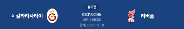 2026년 3월 11일(수) 02:45 (KST) 예정 | UEFA 챔피언스리그 16강 1차전 갈라타사라이 vs 리버풀 분석