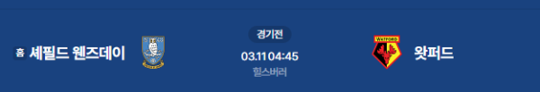 2026년 3월 11일(수) 04:45 (KST) 예정 | EFL 챔피언십 37라운드 셰필드 웬즈데이 vs 왓퍼드 분석