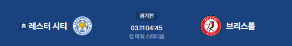 2026년 3월 11일(수) 04:45 (KST) 예정 | EFL 챔피언십 37라운드 레스터 시티 vs 브리스톨 시티 분석