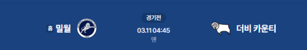 2026년 3월 11일(수) 04:45 (KST) 예정 | EFL 챔피언십 37라운드 밀월 FC vs 더비 카운티 분석