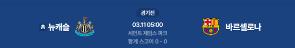 2026년 3월 11일(수) 05:00 (KST) 예정 | UEFA 챔피언스리그 16강 1차전 뉴캐슬 vs 바르셀로나 분석