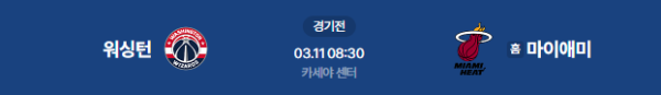 2026년 3월 11일(수) 09:30 (KST) 예정 | NBA 정규시즌 워싱턴 위저즈 vs 마이애미 히트 분석