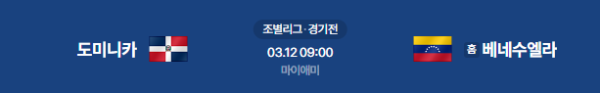 2026년 3월 12일(목) 09:00 (KST) 예정 | 2026 WBC D조 10차전 도미니카 공화국 vs 베네수엘라 분석