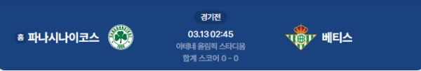 2026년 3월 13일(금) 02:45 (KST) 예정 | 유로파리그 16강 1차전 파나시나이코스 vs 레알 베티스 분석