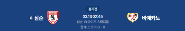 2026년 3월 13일(금) 02:45 (KST) 예정 | UEFA 컨퍼런스리그 16강 1차전 삼순스포르 vs 라요 바예카노 분석