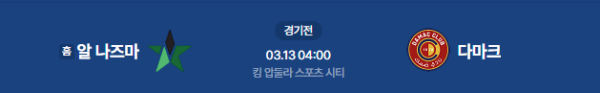2026년 3월 13일(금) 04:00 (KST) 예정 | 사우디 프로페셔널리그 26라운드 알 나즈마 vs 다마크 분석