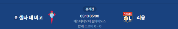 2026년 3월 13일(금) 05:00 (KST) 예정 | UEFA 유로파리그 16강 1차전 셀타 비고 vs 올림피크 리옹 분석