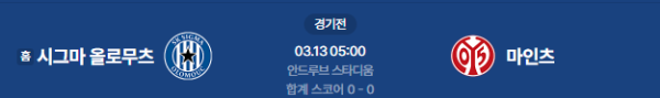 2026년 3월 13일(금) 05:00 (KST) 예정 | UEFA 컨퍼런스리그 16강 1차전 시그마 올로무츠 vs 마인츠 분석