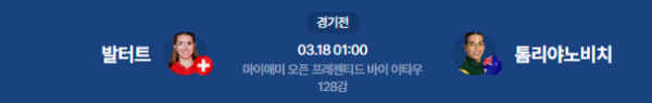 발터트가 톰리야노비치를 상대로 거뒀던 지난 승리의 공식을 재현하며 연패를 끊어낼 수 있을지가 핵심입니다. 반면 톰리야노비치는 최근 인디언웰스에서의 좋은 흐름을 마이애미로 그대로 가져와 베테랑의 품격을 보여줄 것으로 기대됩니다.