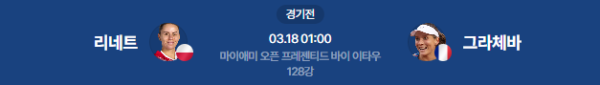 2026년 3월 18일(수) 01:10 (KST) 예정 | WTA 마이애미 오픈 128강 마그다 리네트 vs 바르바라 그라체바 분석