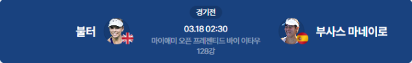 2026년 3월 18일(수) 01:10 (KST) 예정 | WTA 마이애미 오픈 128강 케이티 불터 vs 예시카 부사스 마네이로 분석