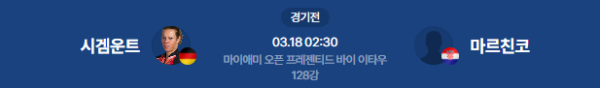 2026년 3월 18일(수) 02:20 (KST) 예정 | WTA 마이애미 오픈 128강 로라 시겜운트 vs 페트라 마르친코 분석
