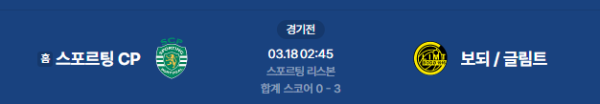2026년 3월 18일(수) 02:45 (KST) 예정 | UEFA 챔피언스리그 16강 2차전 스포르팅 CP vs FK 보되/글림트 분석