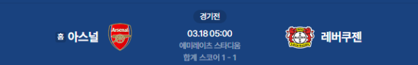2026년 3월 18일(수) 05:00 (KST) 예정 | UEFA 챔피언스리그 16강 2차전 아스널 FC vs 바이엘 레버쿠젠 분석