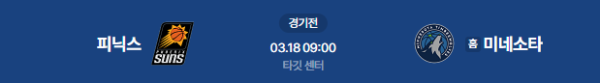 2026년 3월 18일(수) 09:00 (KST) 예정 | NBA 정규 시즌 미네소타 팀버울브스 vs 피닉스 선즈 분석