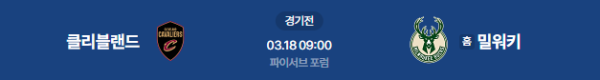 2026년 3월 18일(수) 09:00 (KST) 예정 | NBA 정규 시즌 밀워키 벅스 vs 클리블랜드 캐벌리어스 분석