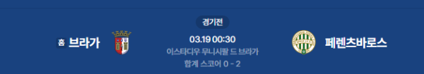 2026년 3월 19일(목) 00:30 (KST) 예정 | UEFA 유로파리그 브라가 vs 페렌츠바로스 분석