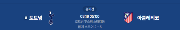 2026년 3월 19일(목) 05:00 (KST) 예정 | UEFA 챔피언스리그 16강 2차전 토트넘 vs 아틀레티코 마드리드 분석
