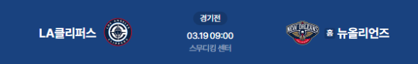 2026년 3월 19일(목) 09:00 (KST) 예정 | NBA 정규 시즌 LA 클리퍼스 vs 뉴올리언스 펠리컨스 분석