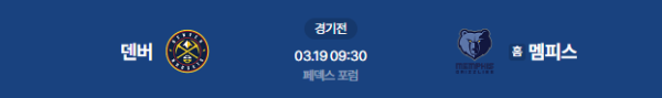 2026년 3월 19일(목) 09:30 (KST) 예정 | NBA 정규 시즌 덴버 너게츠 vs 멤피스 그리즐리스 분석