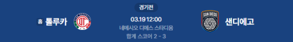 2026년 3월 19일(목) 12:00 (KST) 예정 | CONCACAF 챔피언스컵 8강 2차전 톨루카 vs 샌디에고 분석