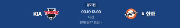 2026년 3월 19일(목) 13:00 (KST) 예정 | KBO 리그 시범경기 KIA 타이거즈 vs 한화 이글스 분석