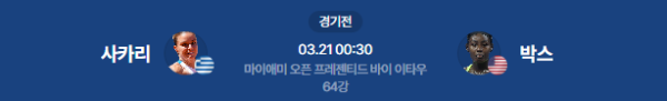 2026년 3월 20일(금) 21:10 (KST) 예정 | WTA 마스터스 1000 마이애미 오픈 64강 마리아 사카리 vs 알리시아 박스(Alycia Parks) 분석
