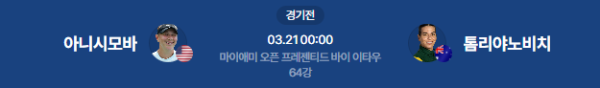 2026년 3월 20일(금) 23:00 (KST) 예정 | WTA 마이애미 오픈 2회전 아만다 아니시모바 vs 아이슬라 톰리야노비치 분석