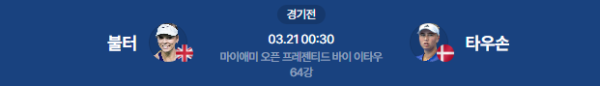 - 리턴의 정교함: 타우손의 묵직한 공을 불터가 얼마나 효과적으로 받아쳐서 역습으로 연결할지가 변수입니다.