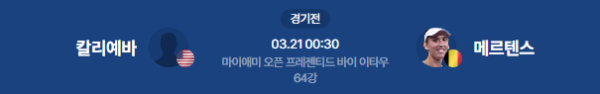 2026년 3월 20일(금) 23:10 (KST) 예정 | WTA 마이애미 오픈 2회전 엘비나 칼리예바 vs 엘리제 메르텐스 분석