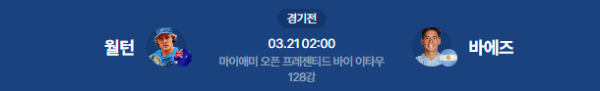 2026년 3월 20일(금) 23:20 (KST) 예정 | ATP 마스터스 1000 마이애미 오픈 1회전(128강) 아담 월턴 vs 세바스티안 바에즈 분석