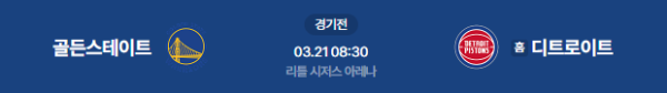 2026년 3월 21일(토) 08:30 (KST) 예정 | NBA 정규시즌 골든스테이트 워리어스 vs 디트로이트 피스톤즈 분석