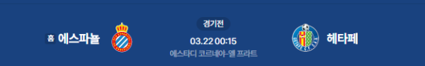 경기 예정 시간: 2026년 3월 22일 00:15 (KST) / 장소: 에스타디 코르네야-엘 프라트