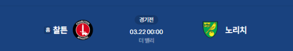 2026년 3월 22일(일) 00:00 (KST) 예정 | 잉글랜드 챔피언십 39라운드 찰튼 애슬레틱 FC vs 노리치 시티 FC 분석