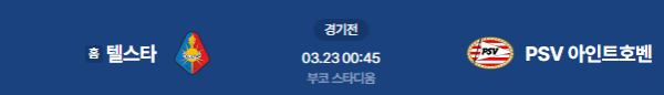 2026년 3월 22일(일) 16:45 (GMT) / 3월 23일(월) 01:45 (KST) 예정 | 네덜란드 에레디비시 27라운드 텔스타 vs PSV 아인트호벤 분석